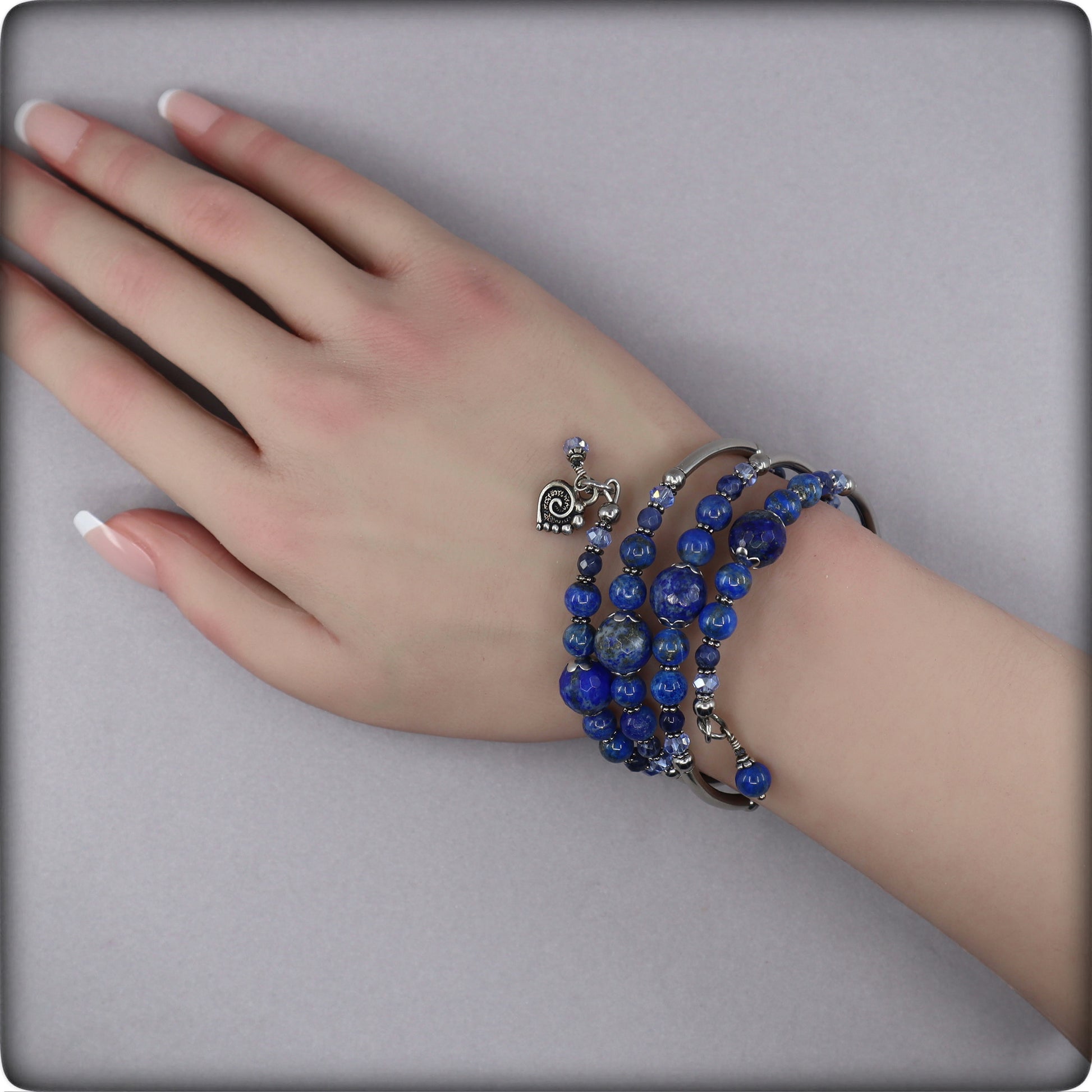 Coil bracelets are easy to put on by simply starting with one end and wrapping it around your wrist. These one of a kind bracelets are made to last using stainless steel hypoallergenic memory wire, Blue Sodalite, pewter components, and more. And they are designed to fit most wrists!